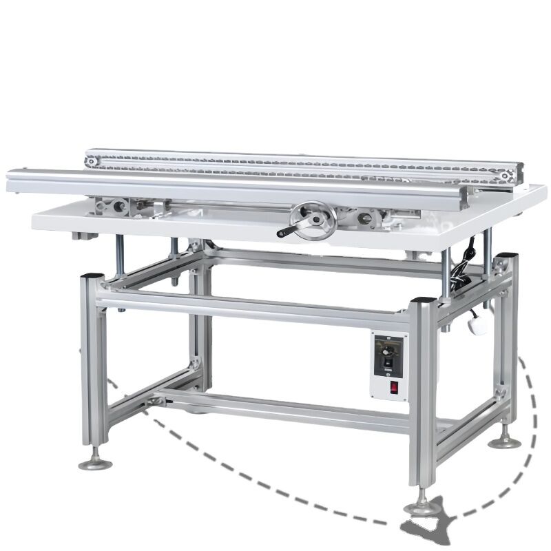This fully automatic SMT wave solder in-feed conveyor is designed to efficiently feed PCBs or pallets into wave soldering machines at a precise 6-7° angle, ensuring optimal soldering performance and production efficiency.